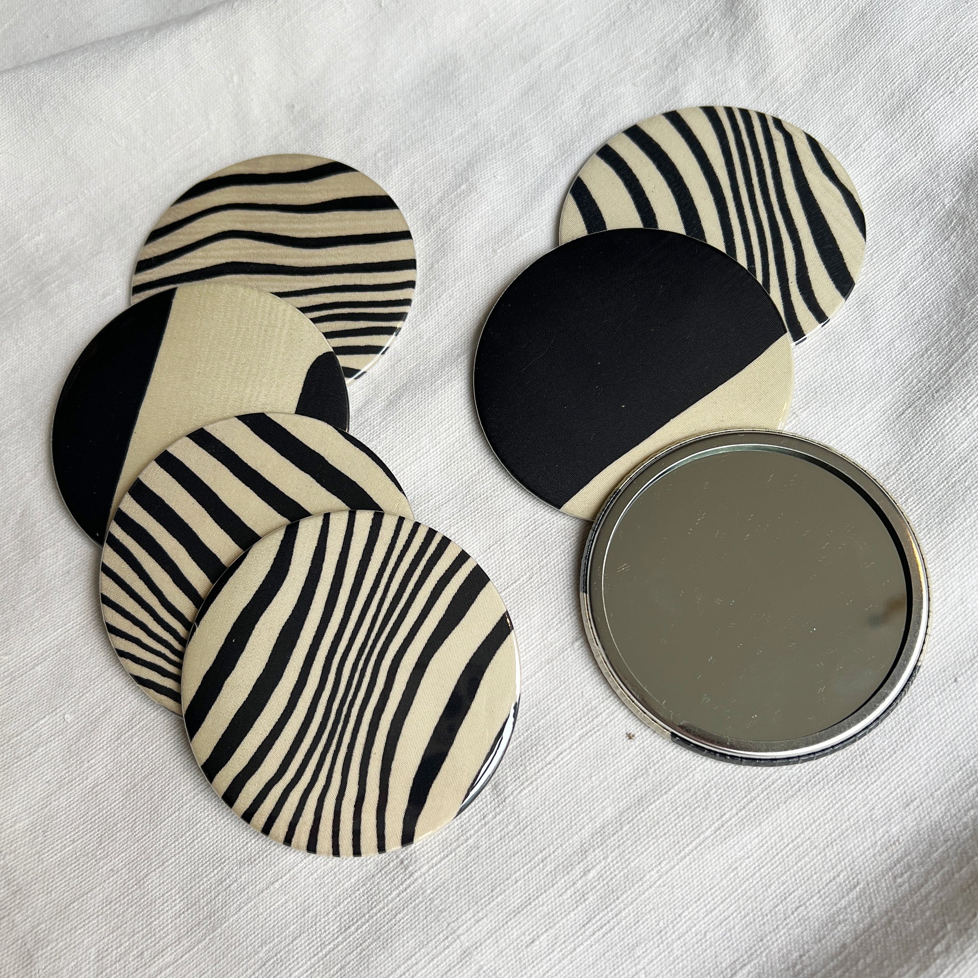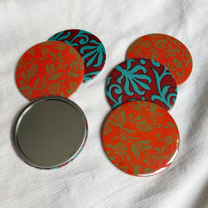 Brighten up your handbag with this quality glass FULI mirror featuring recycled sari fabric, handmade in the AQ studio; lovely gift - every piece unique!